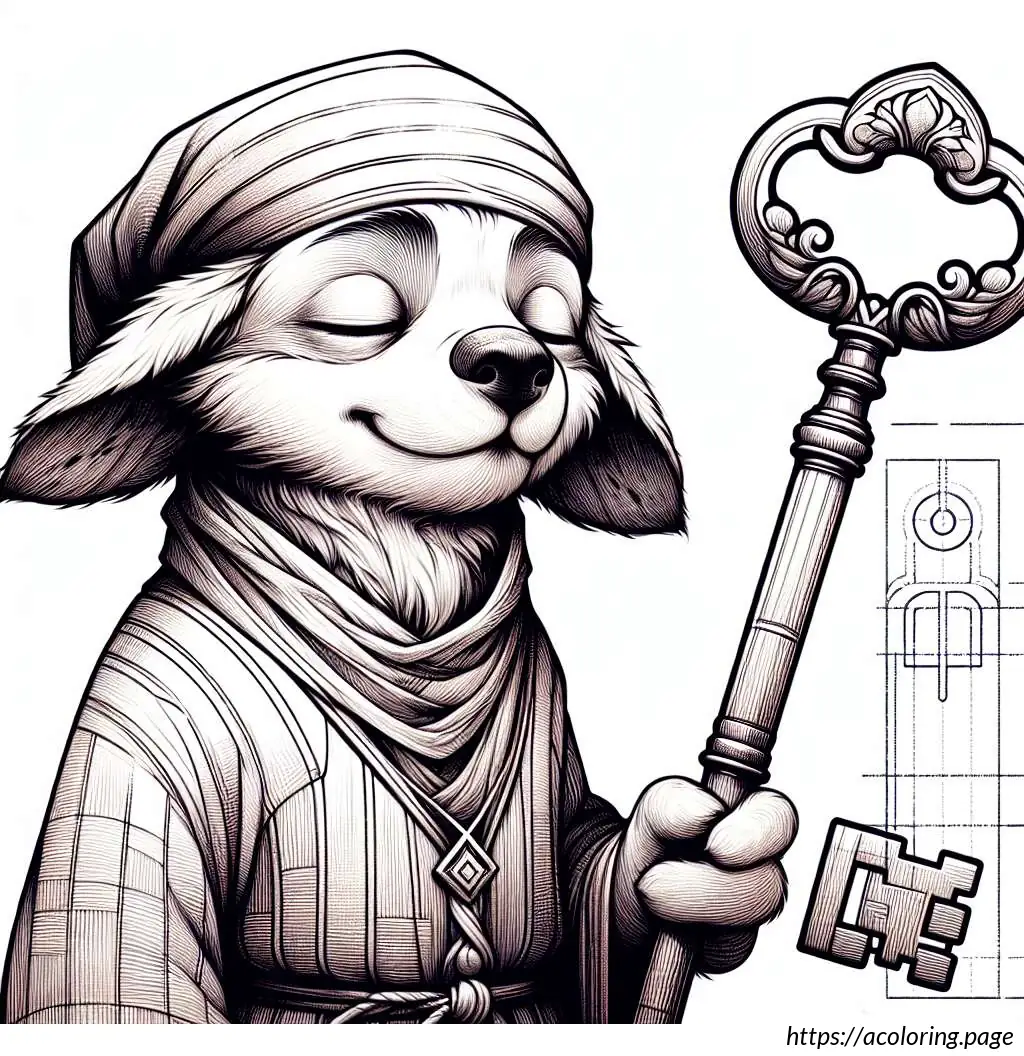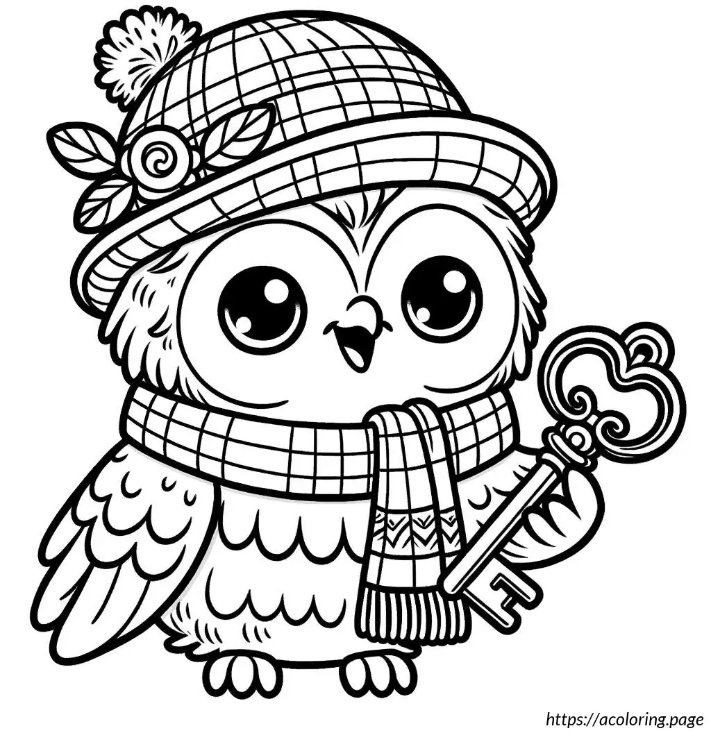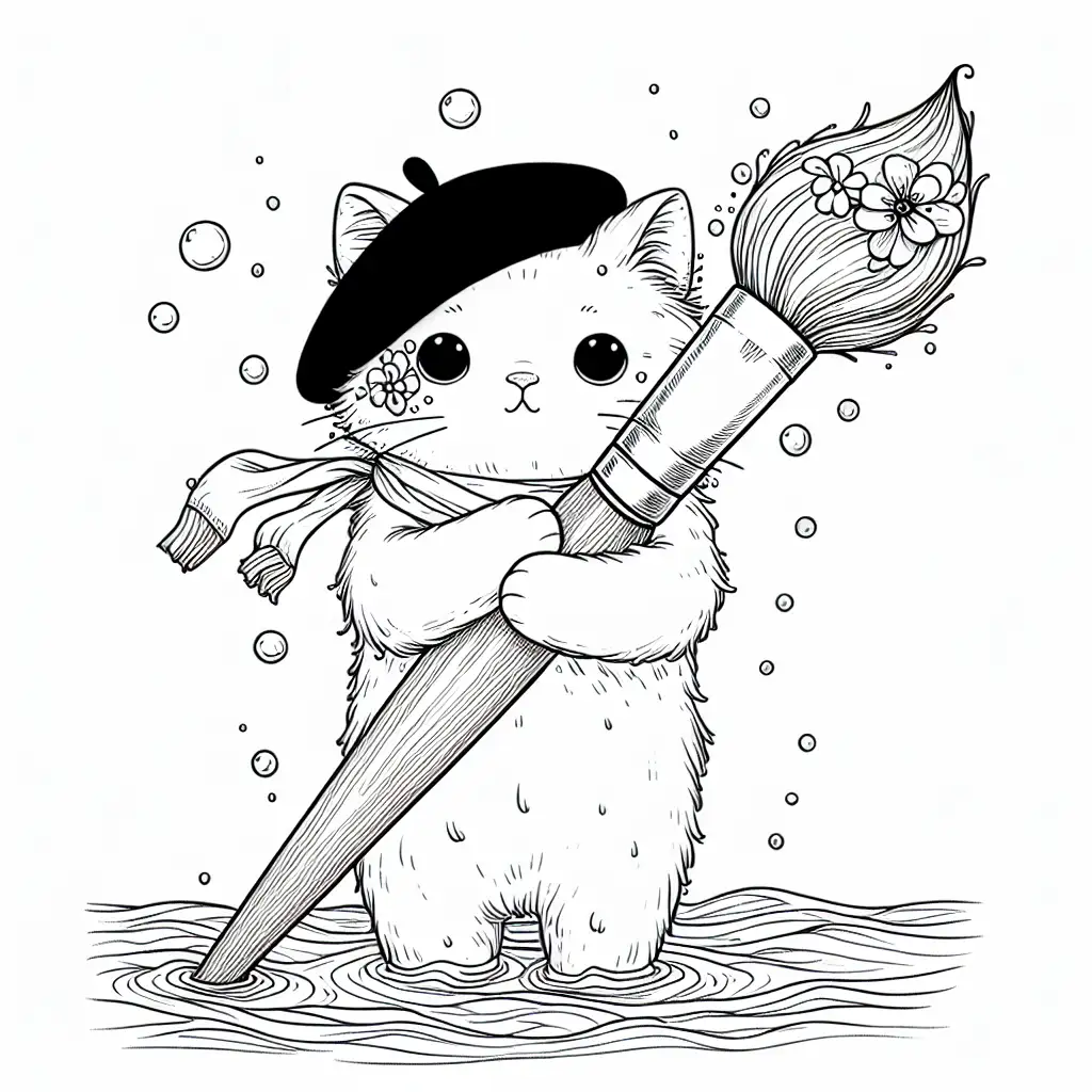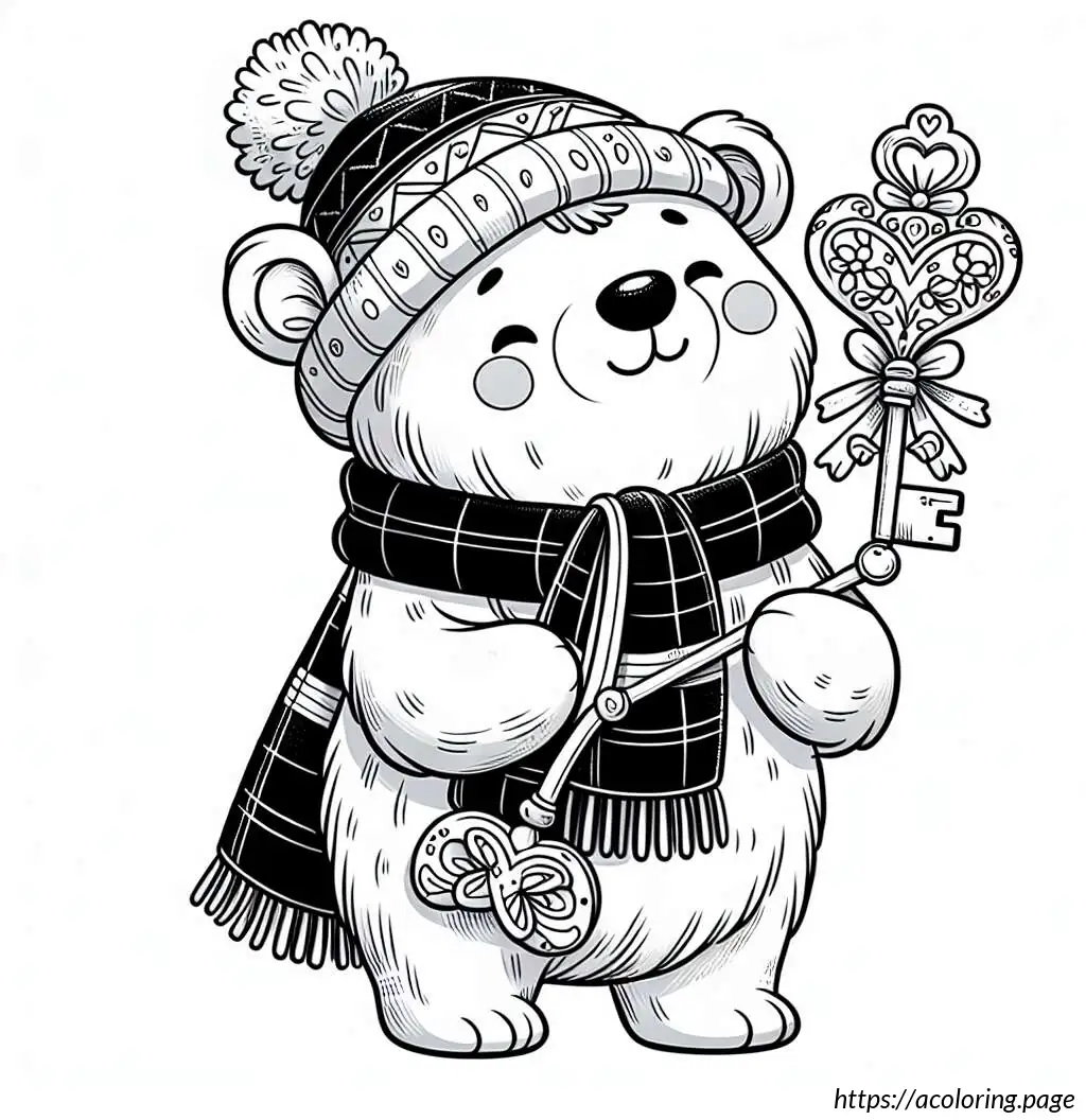 The image shows a cartoon drawing of a bear-like figure. It appears to be wearing a scarf and a sleeping cap with a pom-pom on the tip. The character is hugging a pillow that is almost as tall as itself, with a flower design at the base of the pillow. The drawing is a simple black and white line art, suitable for coloring. The bear is smiling and has closed eyes, suggesting a peaceful or content demeanor. The overall look is cute and playful, ideal for children’s coloring activities.