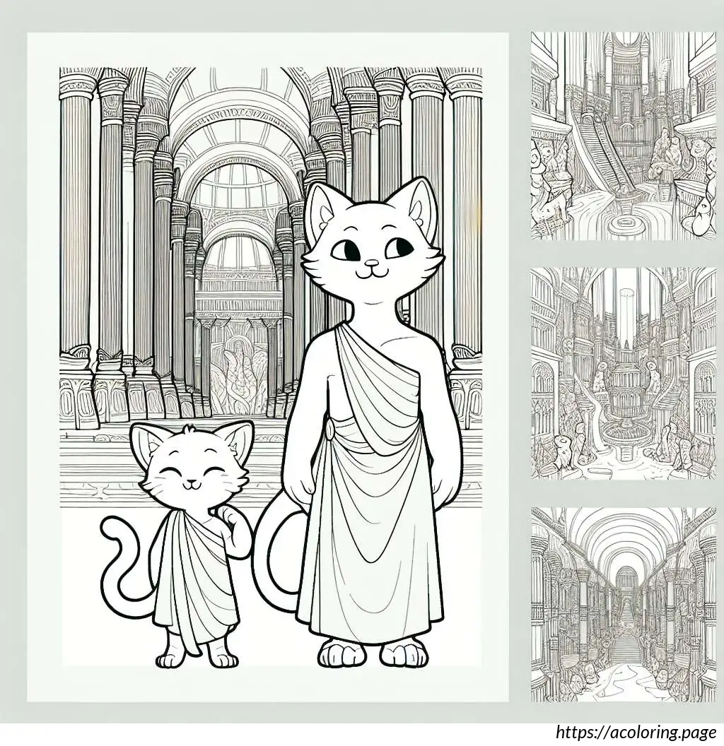 The overall composition and style of the illustration is simplistic and whimsical, aimed presumably at a younger audience, ideal for educational or entertainment purposes related to historical or cultural themes.