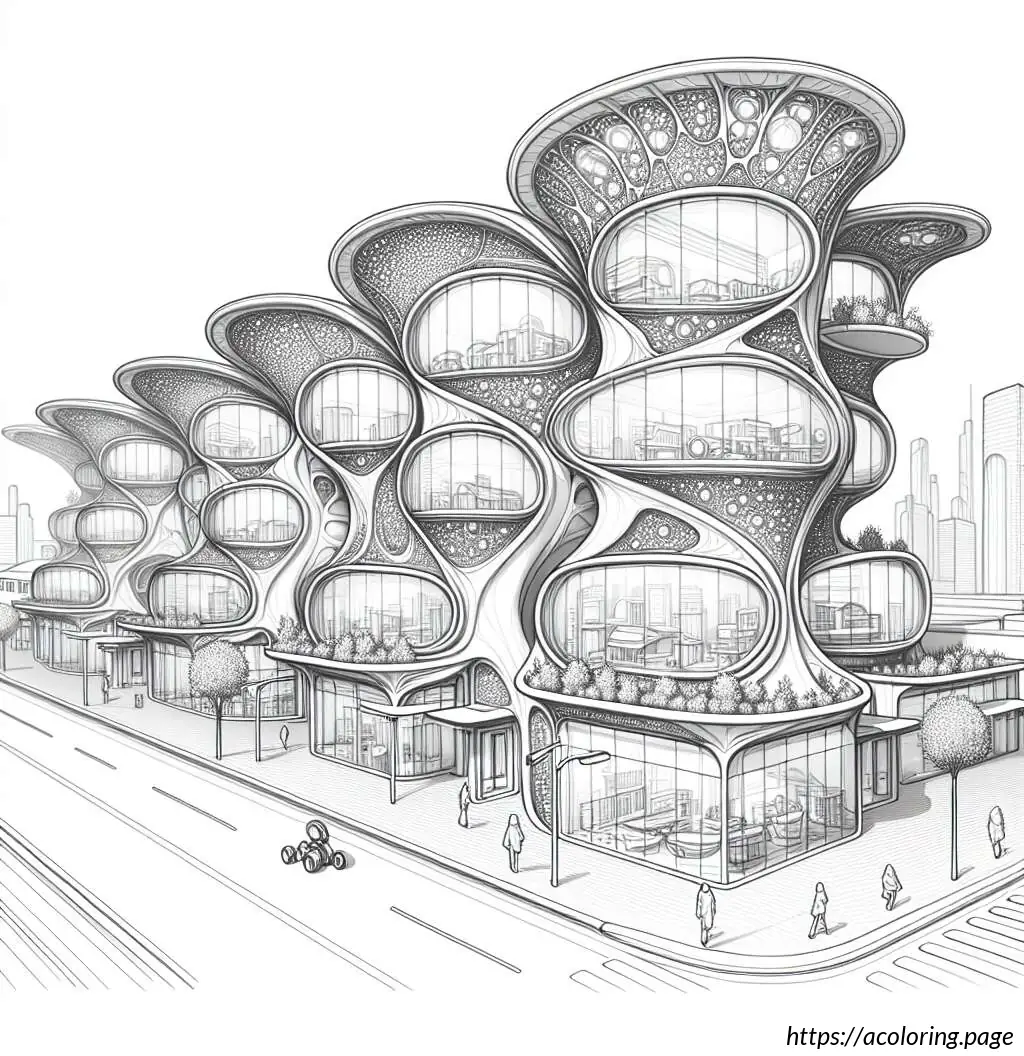 Overall, the drawing has an imaginative, playful, and childlike quality, likely appealing to both children and those fond of playful, artistic expressions in urban and architectural drawings.