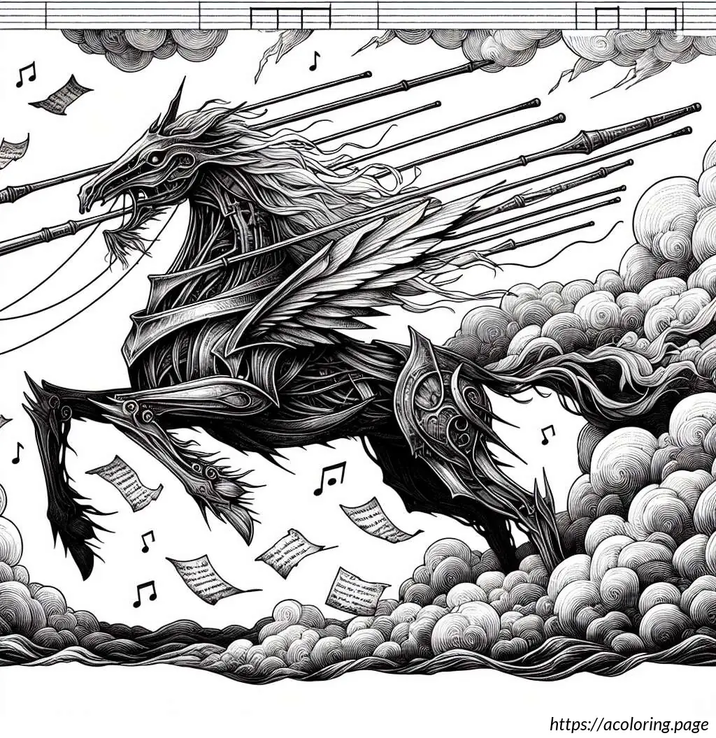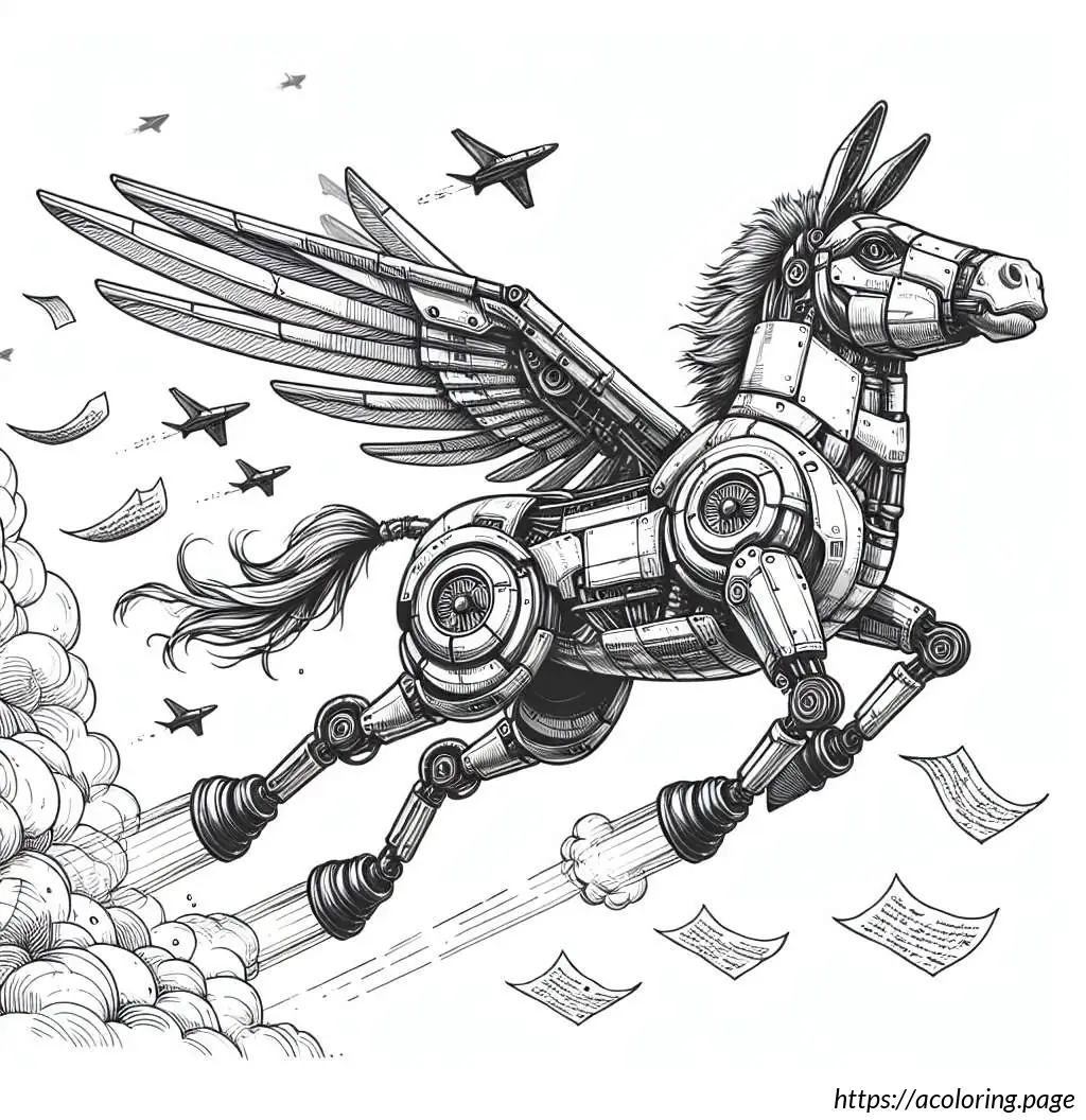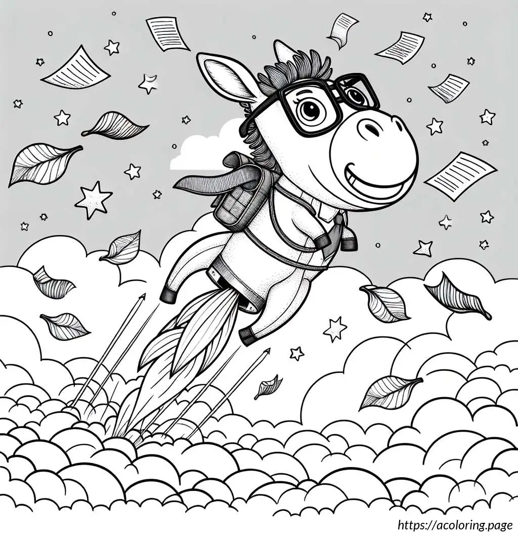 The rocket is in mid-flight, with an upward trajectory as indicated by the direction of the pencil and movement lines. Clouds embellishing the background enhance the sense of this object flying through the sky. Various office supplies, like scattered paper, are depicted falling away from the binder clip, contributing a humorous note to the image as if the contents of an office desk were launched into space. This artwork simplifies objects, employing minimalistic design for whimsical or educational purposes, possibly aimed towards children to stimulate imagination regarding everyday objects.