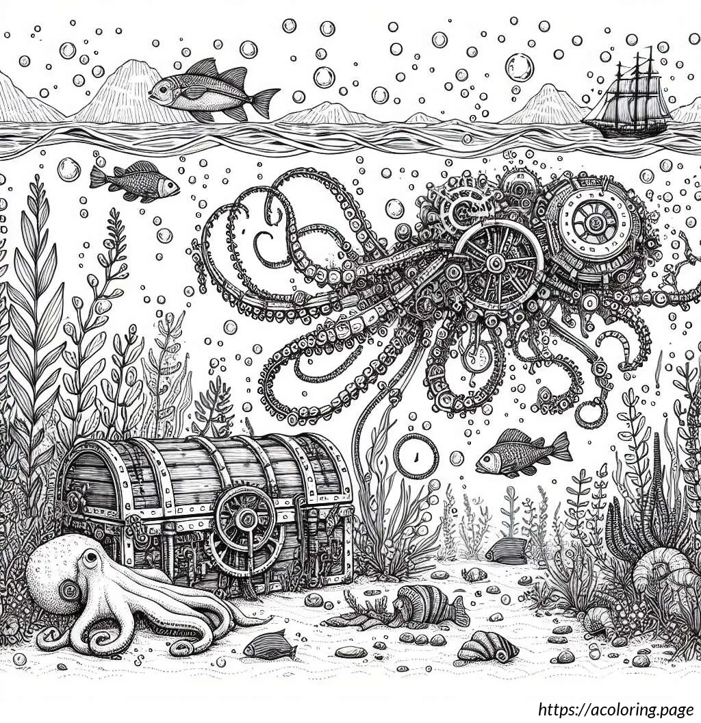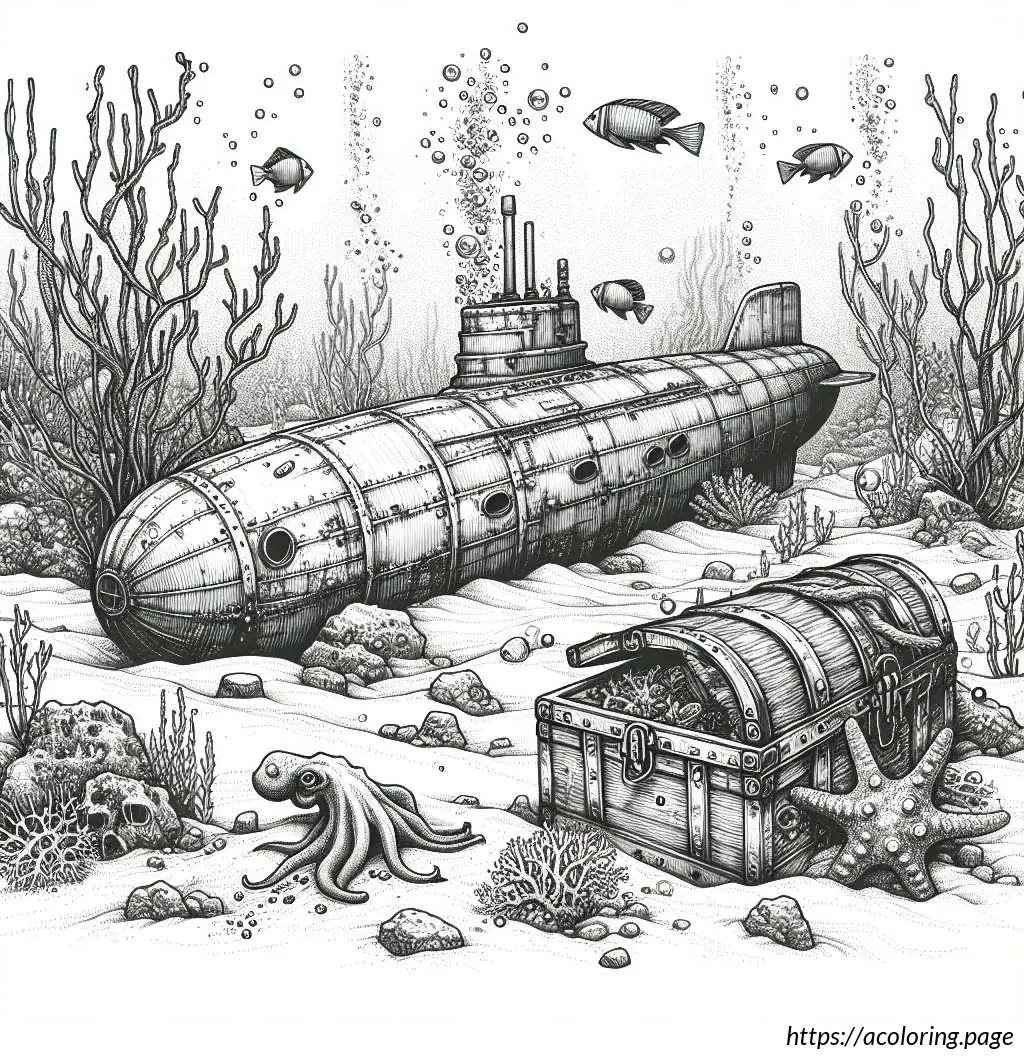 - There is a sunk treasure chest highlighting an element of underwater mystery or adventure.