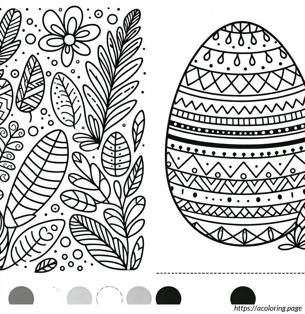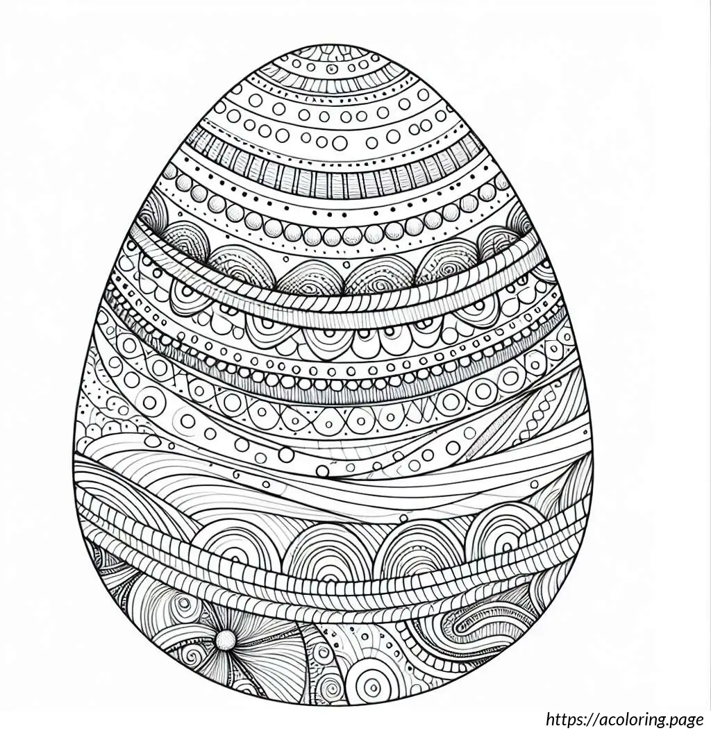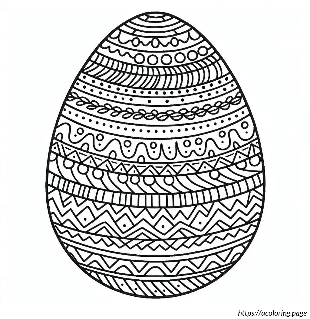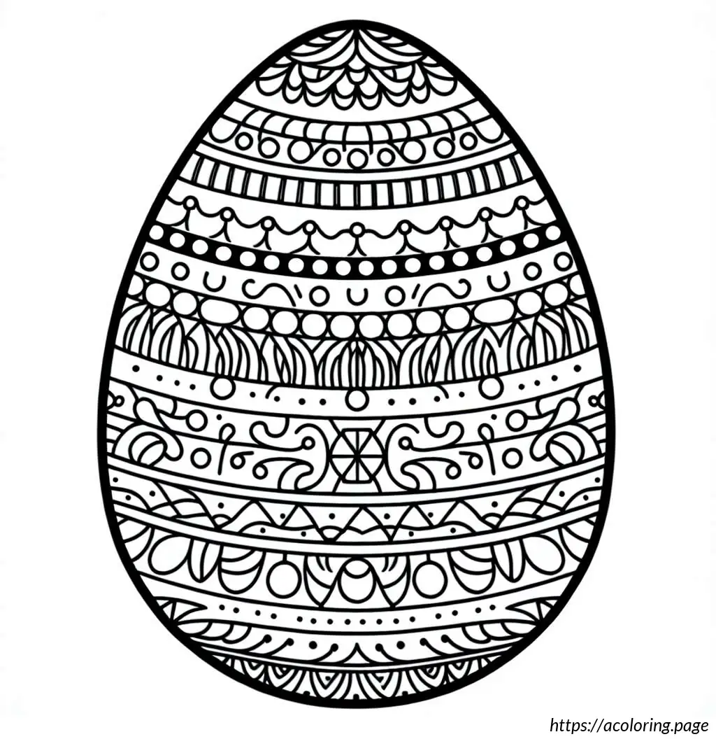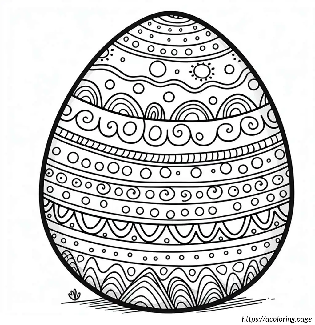 The image features a line drawing of an Easter egg. The egg is decorated with multiple patterns across its surface. From top to bottom, the patterns are as follows: