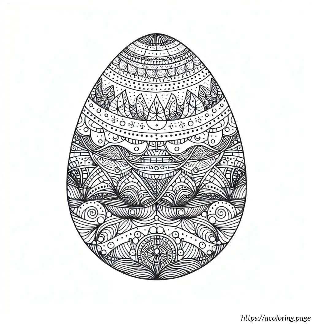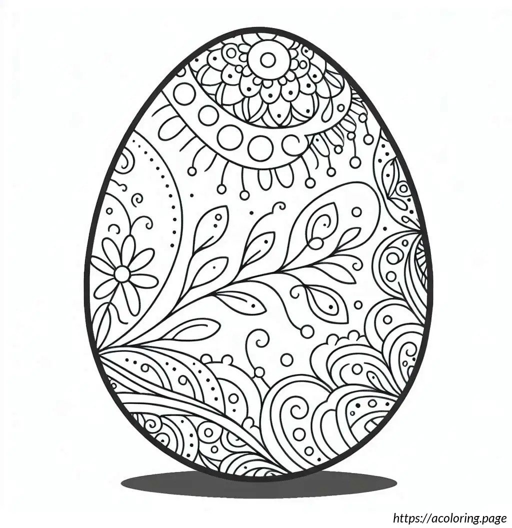 These decorations vary in style and create a visually engaging and symmetrically pleasing design on the egg. The drawing is in black and white, intended for coloring activities.