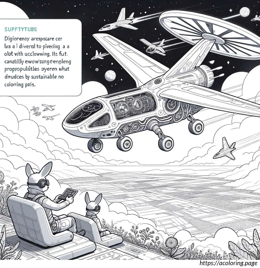 The image features a whimsical, cartoon-style illustration of two deer-like creatures flying an airplane. The airplane, drawn in a simplistic and friendly fashion, is shown with a single propeller at the front, emitting small motion lines indicating it’s spinning. The aircraft’s body is streamlined, and its wings are outstretched prominently.