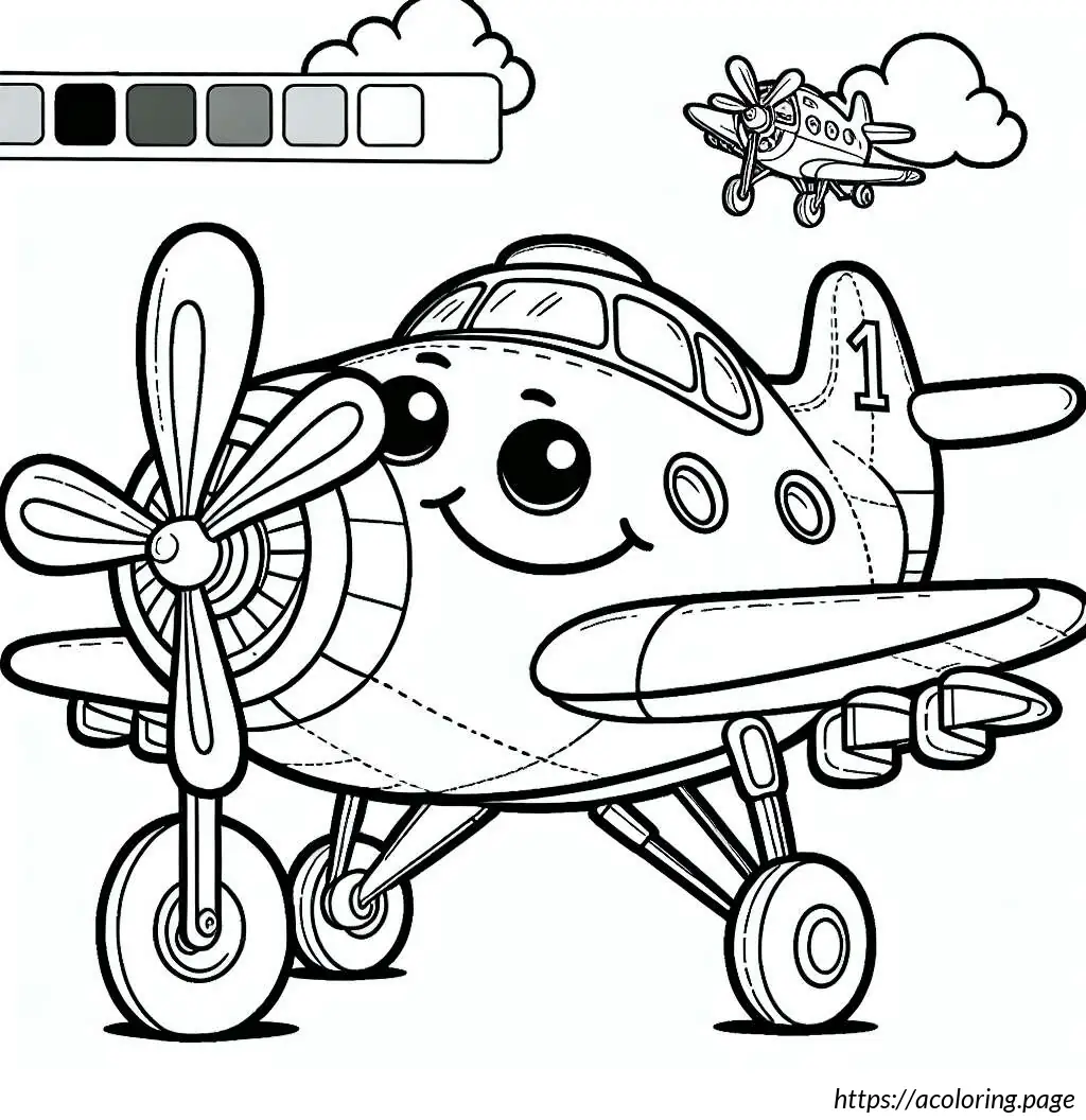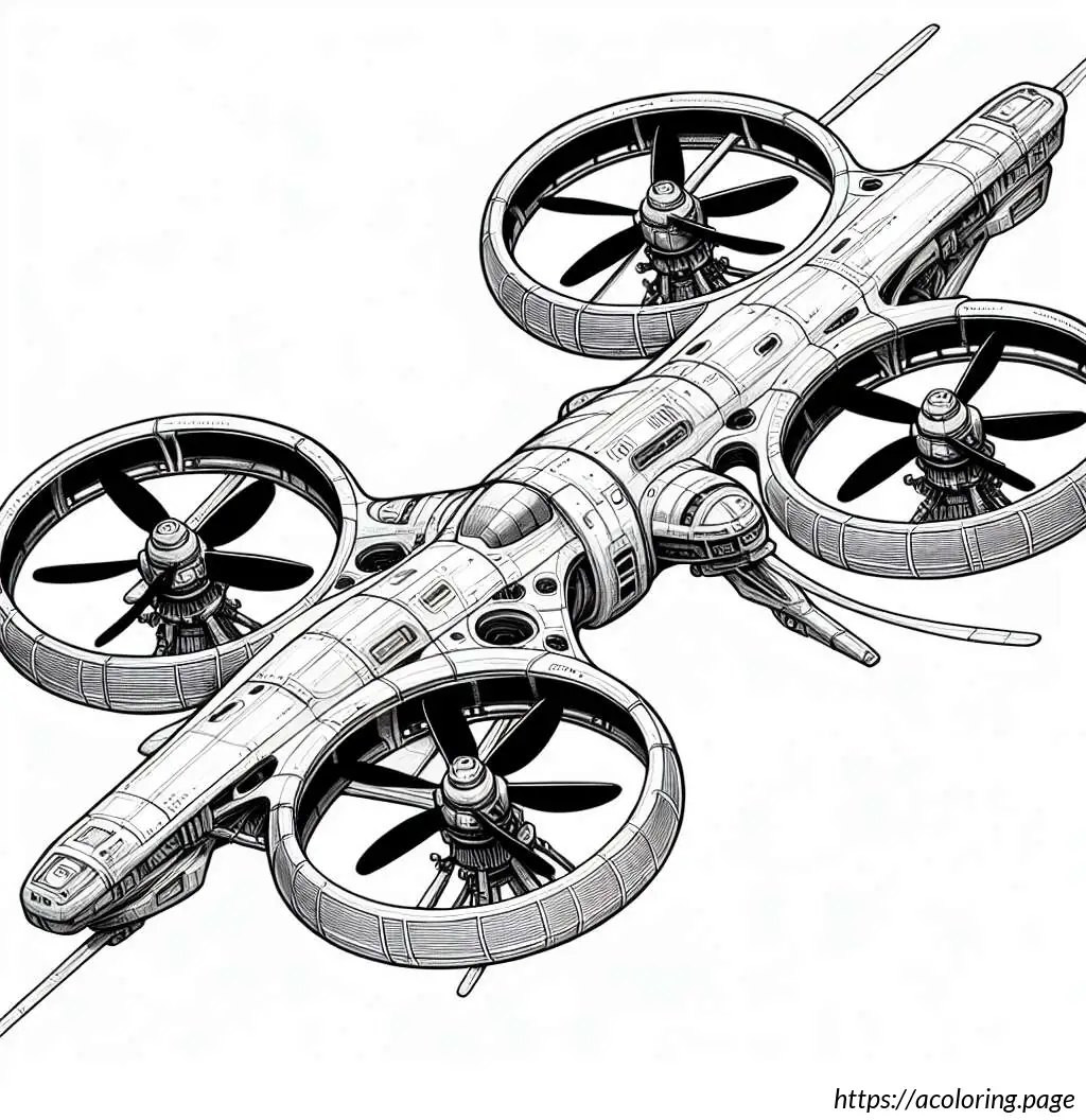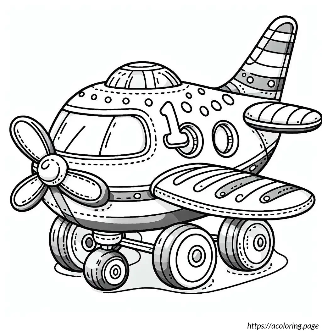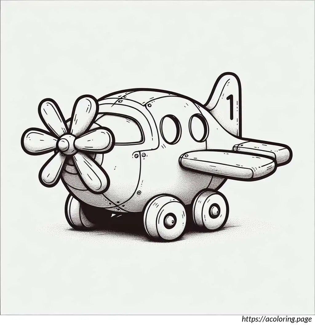 The image depicts a cartoon-style drawing of a helicopter. The helicopter features a large body with a number “1” on the side, implying it might be a rescue or special service helicopter. The body has rounded edges and a bulbous shape, enhancing its cartoon-like appearance. Two large propellers are visible, one on top for lift and a smaller one at the tail for navigation. Additionally, there are three landing wheels under the body, each resembling a small bulb. This image seems designed for coloring activities, with bold outlines and clear spaces to apply colors.