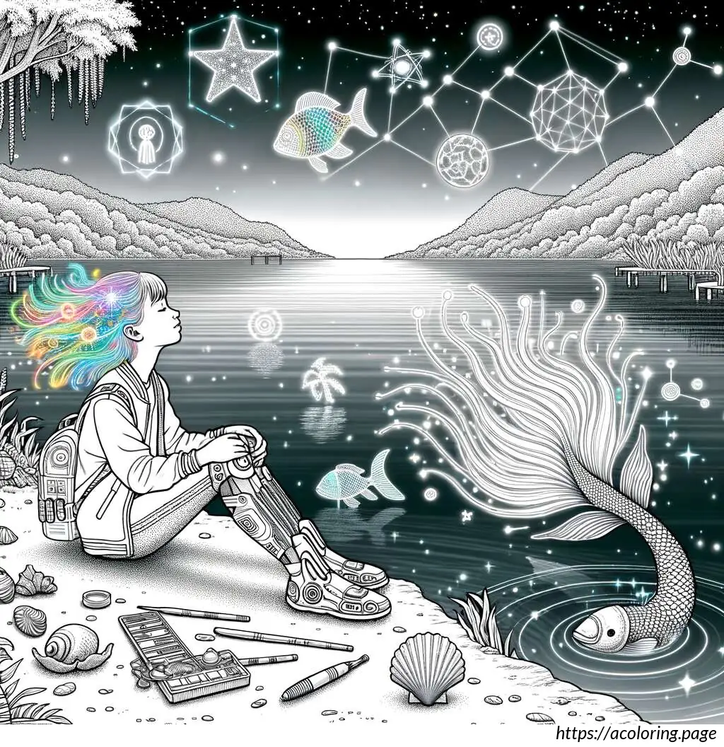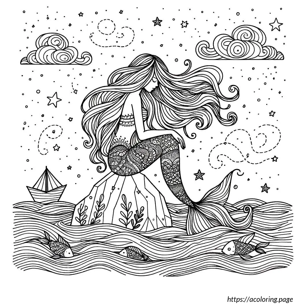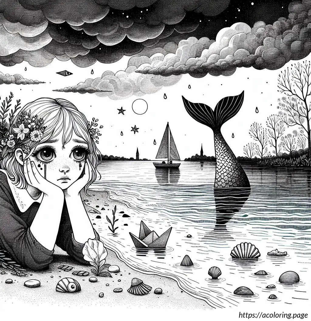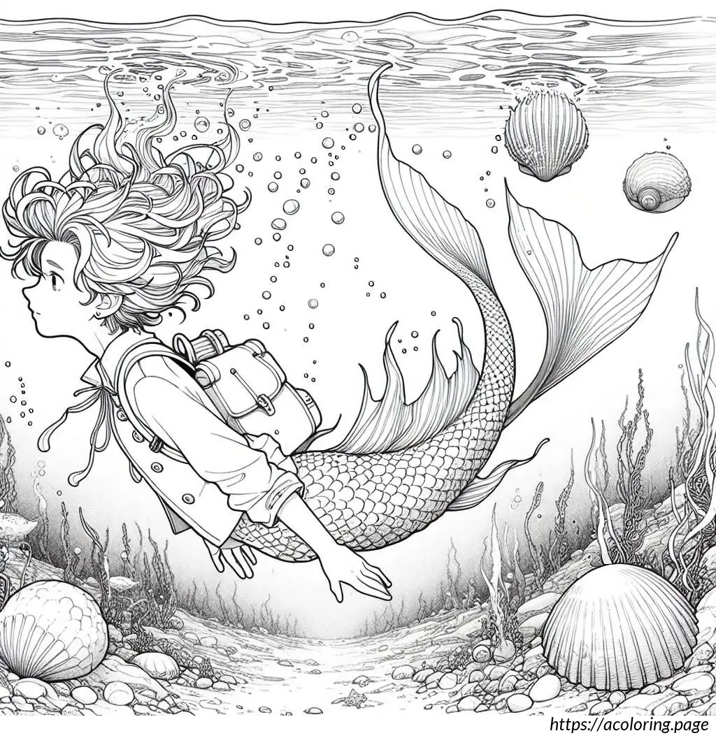 Overall, the image is suitable for coloring activities, designed to spark imagination and creativity, particularly for those who enjoy mystical and aquatic themes.