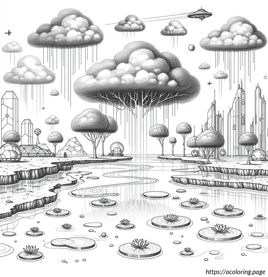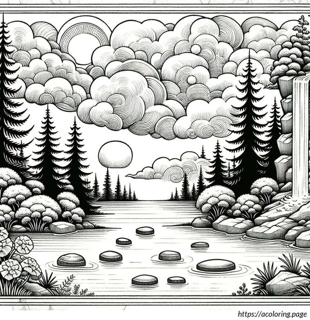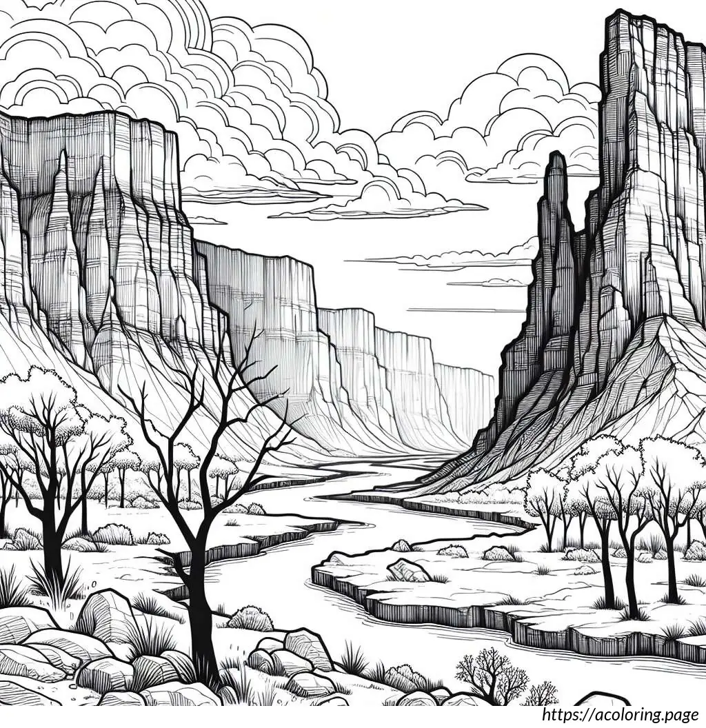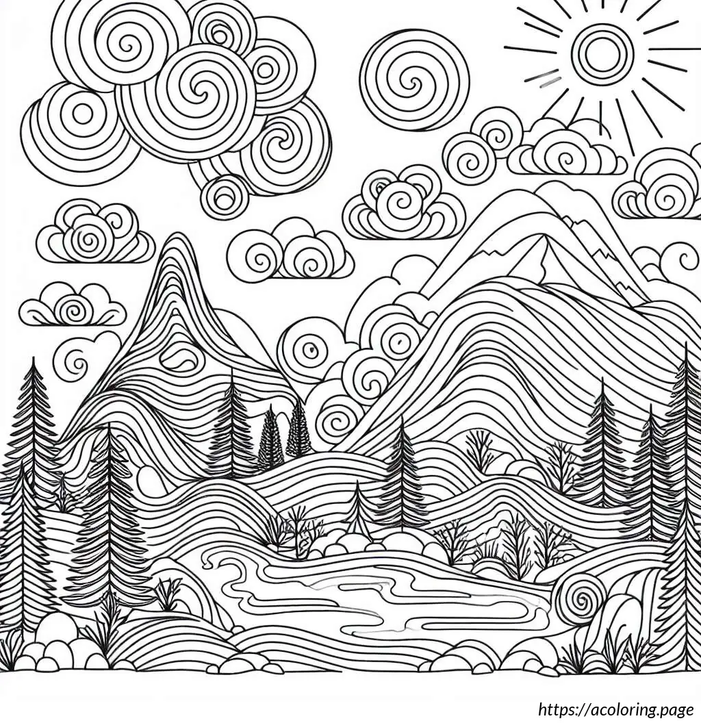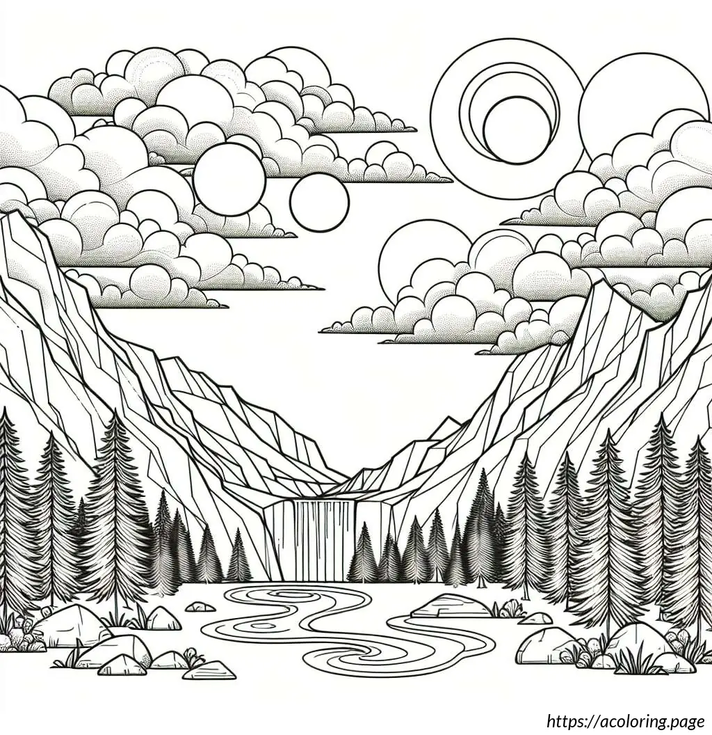 Overall, the image is structured in a simplistic, stylized form that could be used for various activities like coloring or educational purposes to teach about natural landscapes.