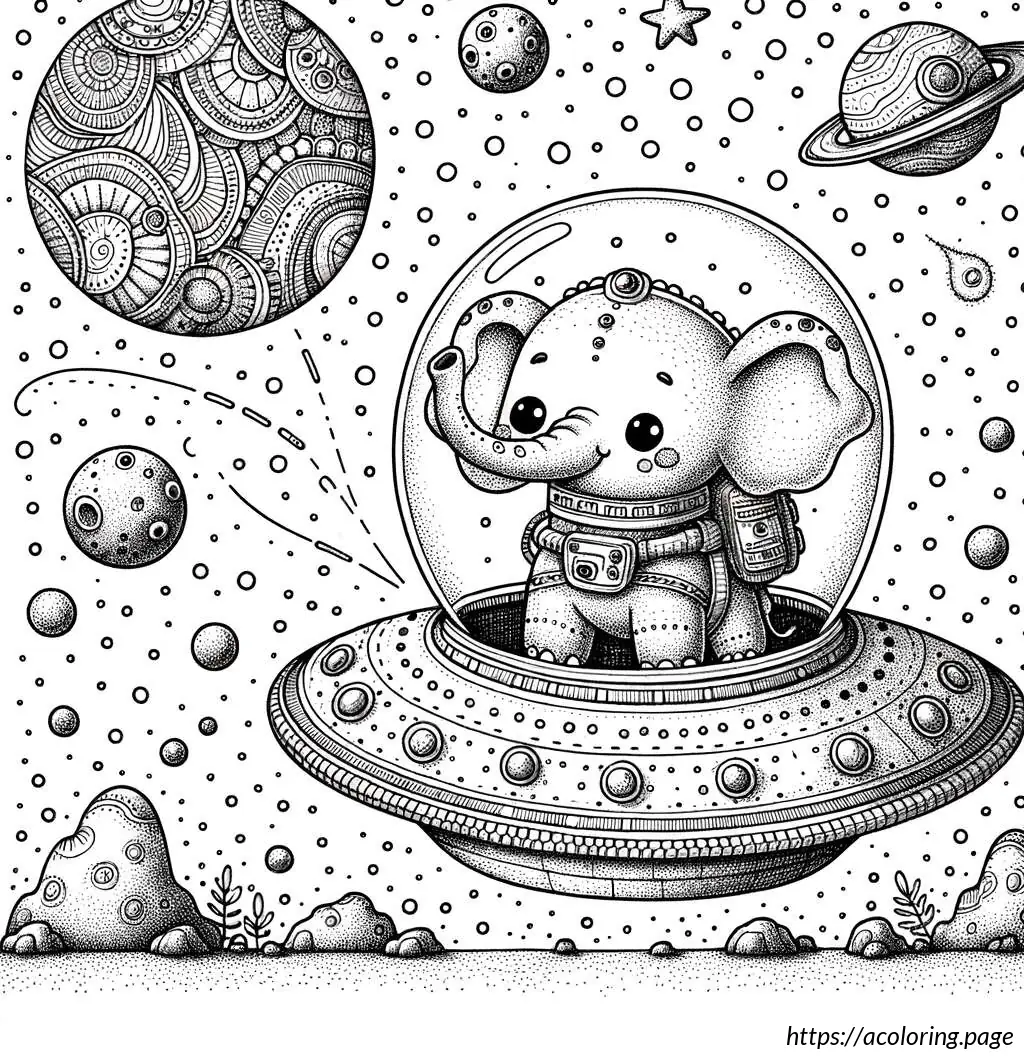 There are a few cartoon-style clouds scattered around the spacecraft, further emphasizing the playful, imaginative nature of the illustration. Below the spacecraft, the Earth is outlined merely, with no detailed geographical features, but containing irregular patches that most likely represent continents and clouds.