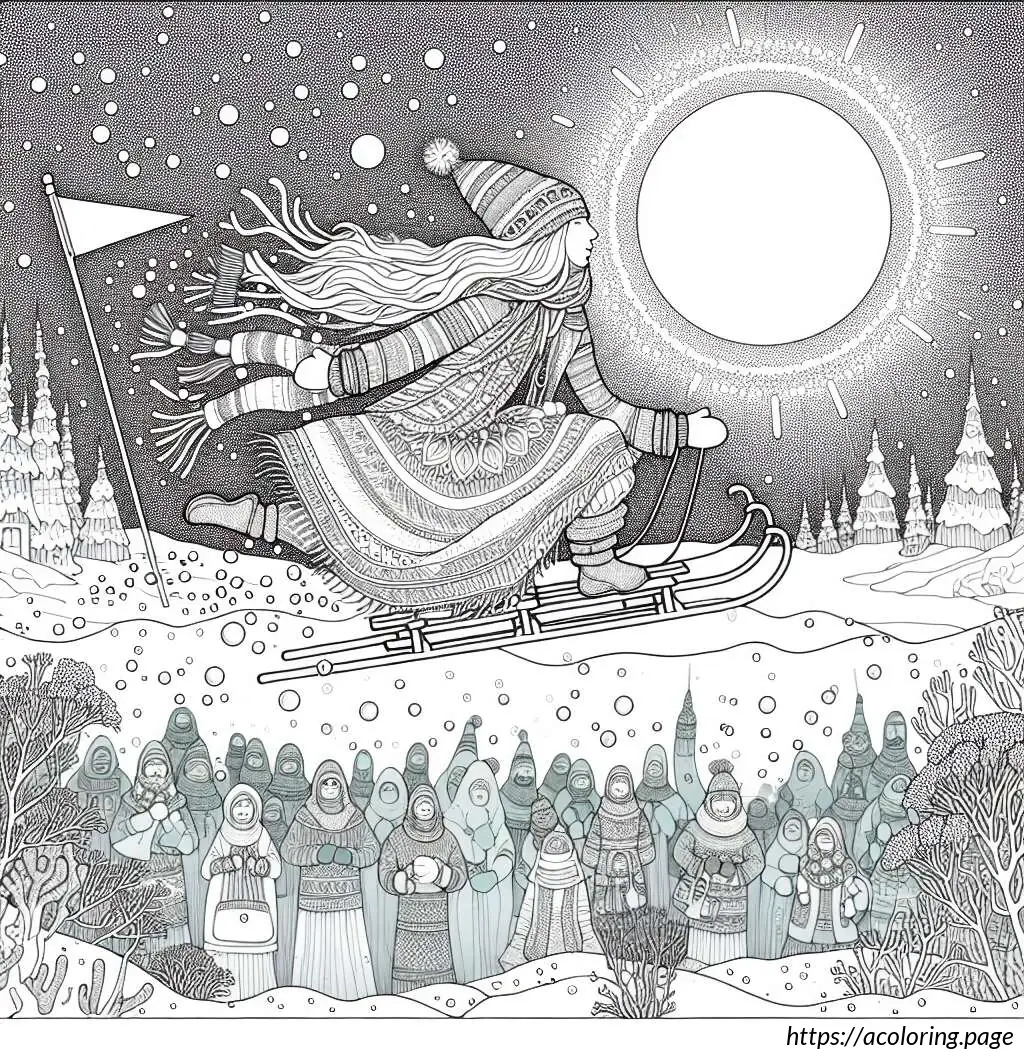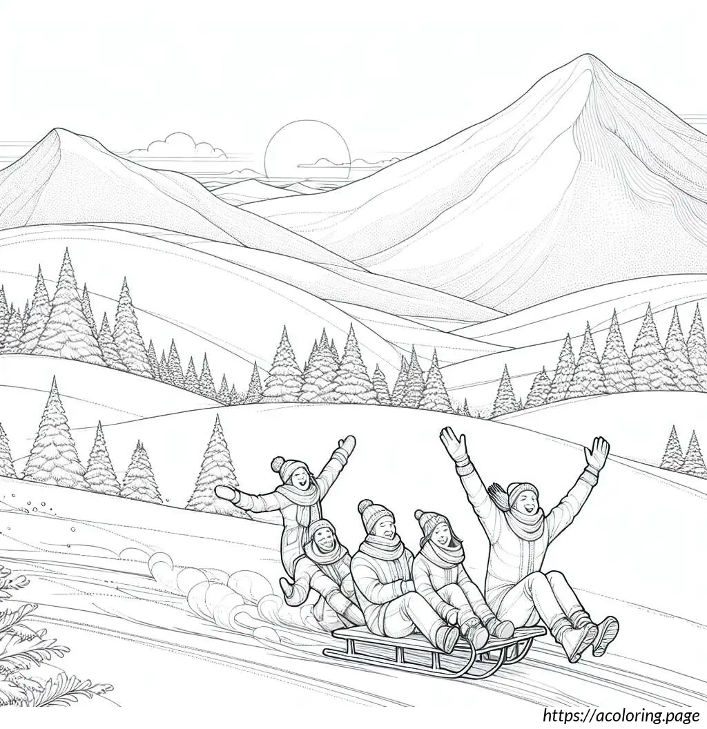 Overall, the scene captures a joyful moment of winter recreation, emphasizing motion and fun outdoor interaction.