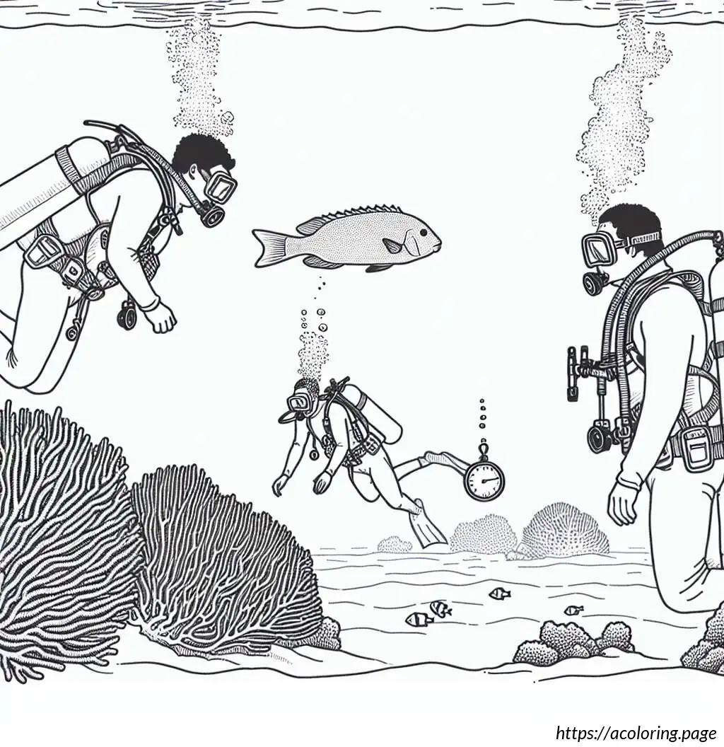 The image is a black and white illustration depicting a scene from an ice hockey game. Three players are visible on the rink. On the left, a goaltender is in front of the net, dressed in full protective gear including a helmet with a face mask, leg pads, and a blocker glove, holding a goalie stick and positioned as if ready to block a shot. In the center and right of the image, two field players are actively engaged in play. Both players are also geared in helmets, gloves, and pads, and are wielding hockey sticks. They are battling over a puck located between them, and both seem focused on gaining control of it.