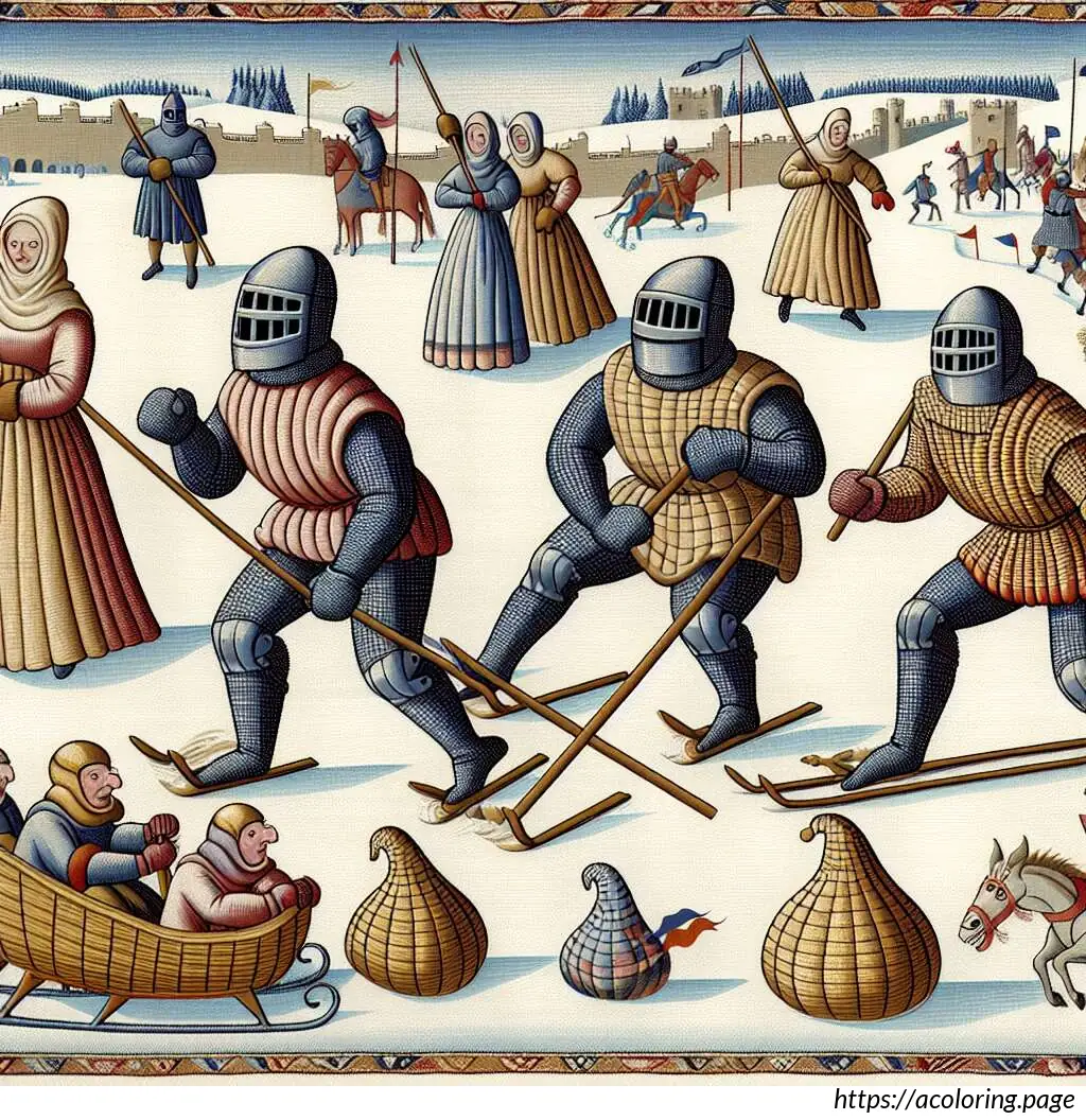 Also captured in the image is a third bobsledder who is already inside the sled, in a seated position, holding the sled’s handles, and prepared for the ride. The outline of the track suggests a chilly, wintery setting which is typical for the sport, indicated by the icy surface of the bobsleigh track.